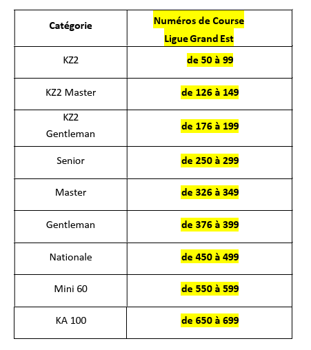A noter, nous organisons toujours notre Championnat avec la BFC, et il a été maintenu le partage des numéros comme suivant: